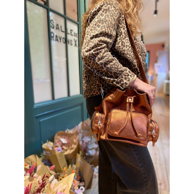 Cuir souple, volumes généreux et détails assumés : trois grandes poches latérales viennent entourer un compartiment central, dans une composition pensée pour conjuguer style et praticité.