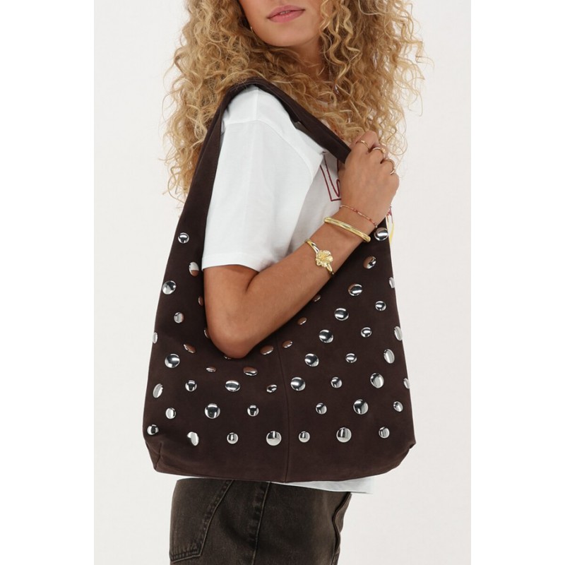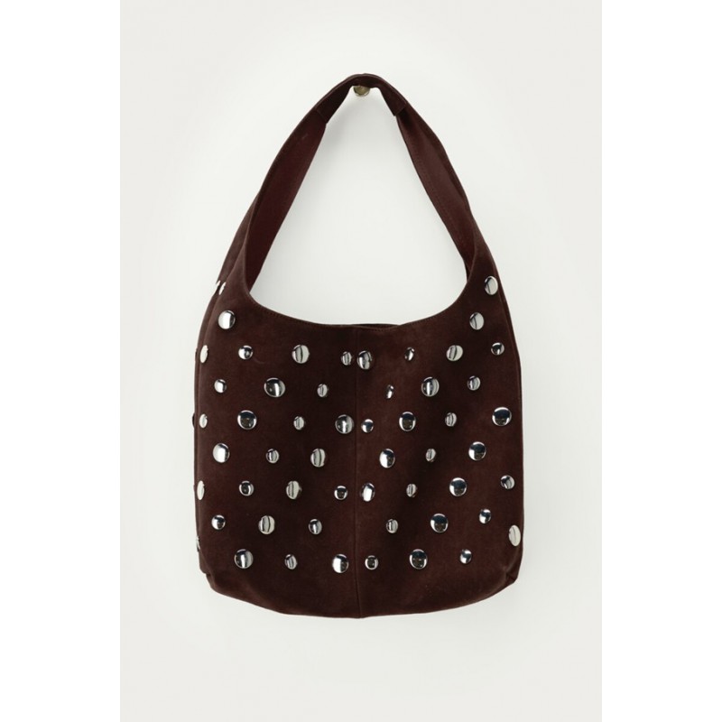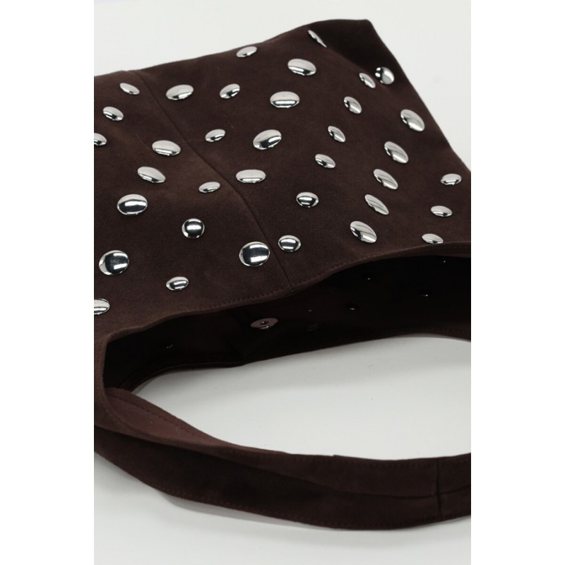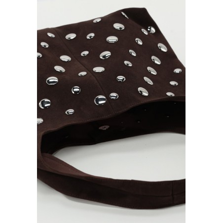 SAC PORTE EPAULE MARRON FONCE AVEC CLOUS