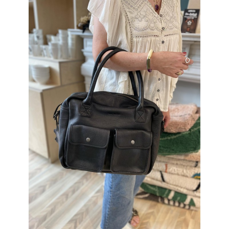 Le sac en cuir Le Dandy se porte à l'épaule avec sa bandoulière ou à la main avec ses deux anses.