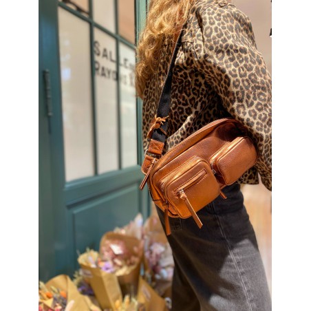Son cuir de vachette souple se décline en teintes audacieuses ou intemporelles, tandis que ses deux poches extérieures zippées renforcent son look utilitaire, si caractéristique de l’époque. Pensée pour bouger, à porter en bandoulière ou à la taille, pour une silhouette aussi libre que stylée.