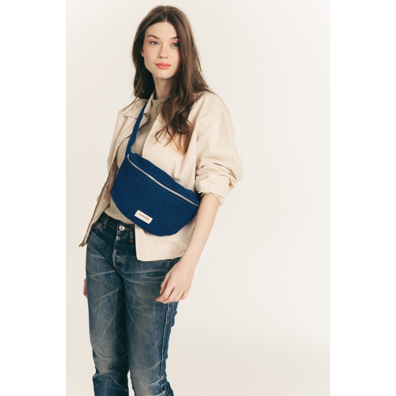 Avec sa forme arrondie, son grand compartiment principal, Custine le sac banane en denim brut va vite remplacer votre sac à main. Clés, portefeuille, téléphone, make-up, vous pouvez y ranger vos essentiels tout en gardant les mains libres.