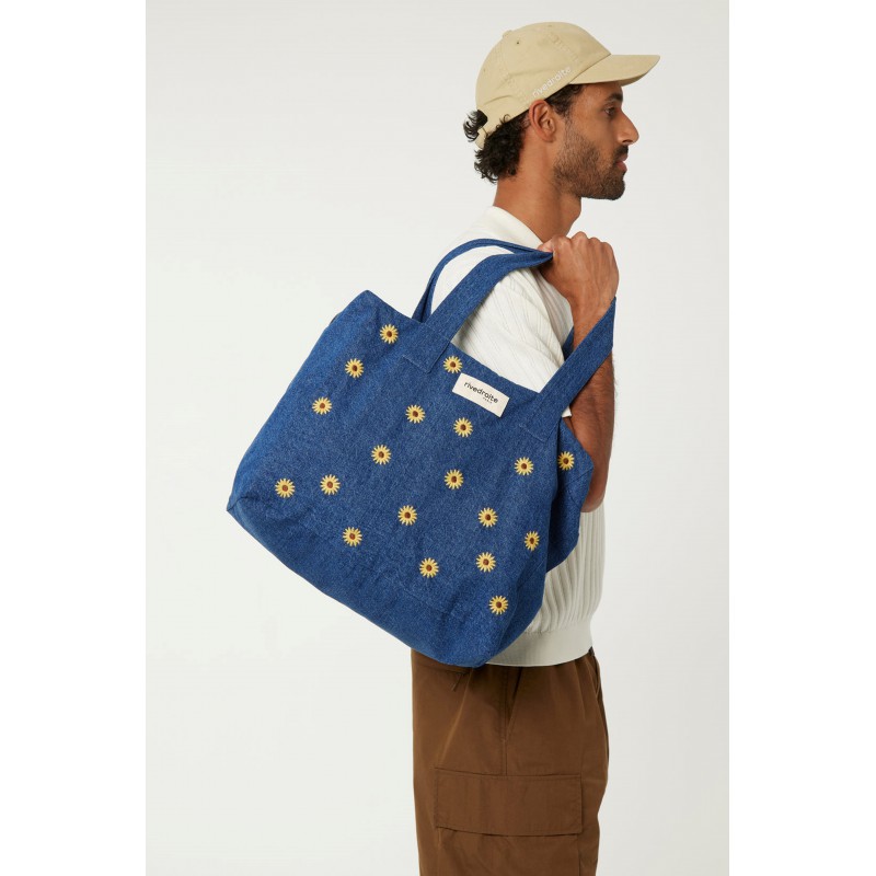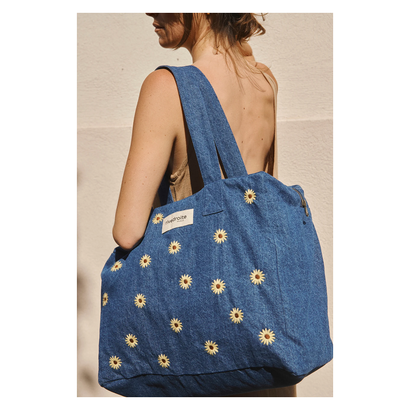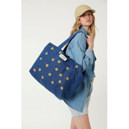 Avec son denim brut parsemé de tournesols brodées jaunes, Célestins fait souffler un vent de fraîcheur et de soleil sur vos vadrouilles du quotidien.