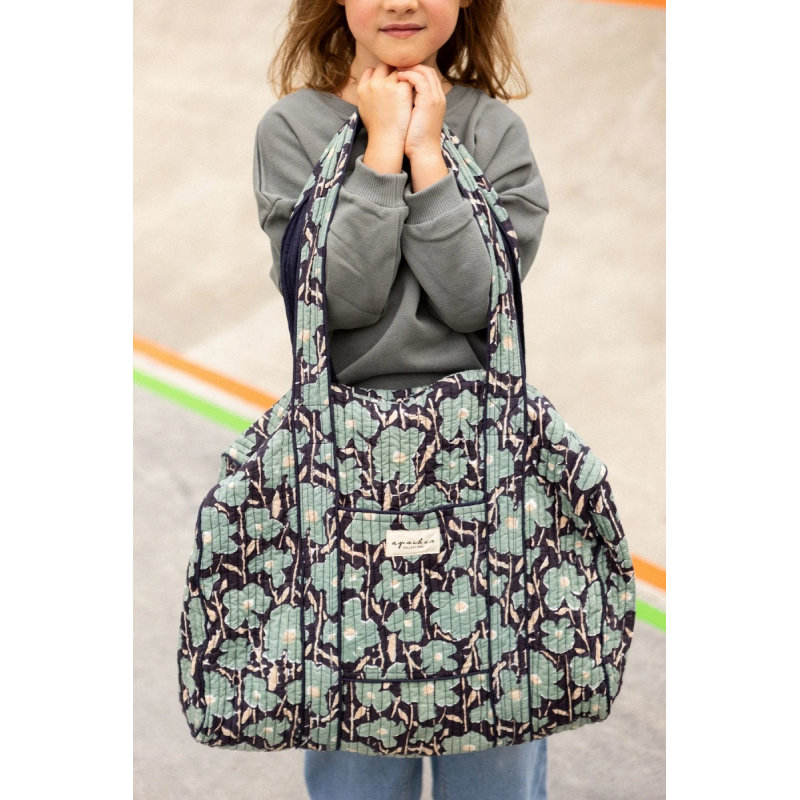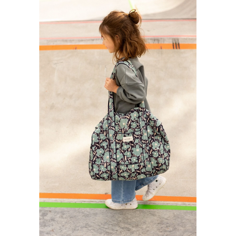 Le sac Buddha DAISY en coton matelassé séduit par son imprimé fleuri lumineux et délicat. Fonctionnel grâce à ses poches plaquées, il devient un sac à langer pratique ou un compagnon idéal pour les week-ends. Son design poétique apporte fraîcheur et élégance à chacun de vos déplacements