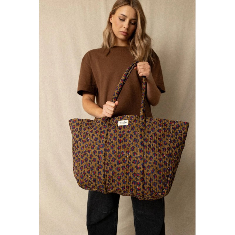 Le cabas SAMBA en coton matelassé revisité en léopard combine élégance féline et fonctionnalité. Son grand format permet de transporter tout ce dont vous avez besoin pour vos sorties, au marché ou à la plage, tout en affirmant un style sauvage et moderne à chaque occasion.