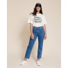 Coupe : T-shirt Jiji, coupe oversize, épaules et manches tombantes, col rond avec une finition bord-côte.