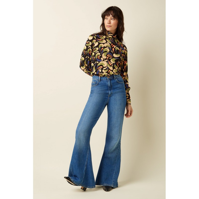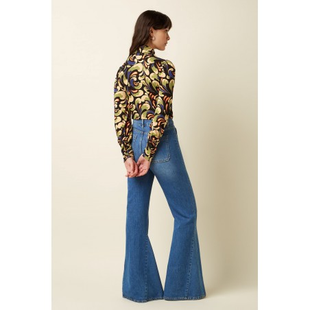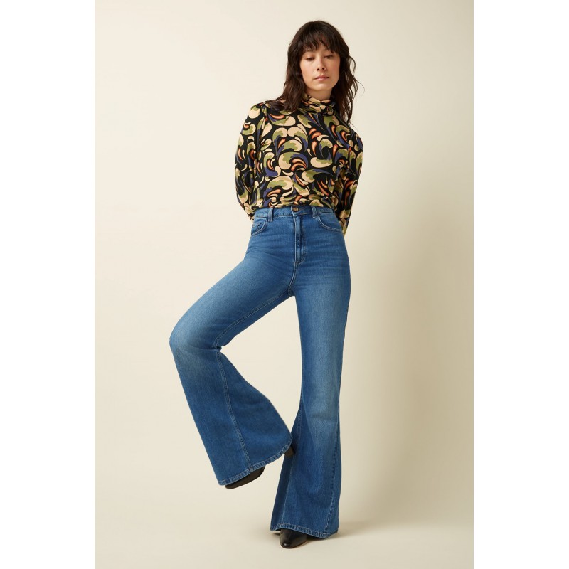 Replongez dans les années 70 avec notre pantalon pattes d'éléphant, doté d'une taille mi-haute et de coutures élégantes sur les jambes pour un effet évasé.