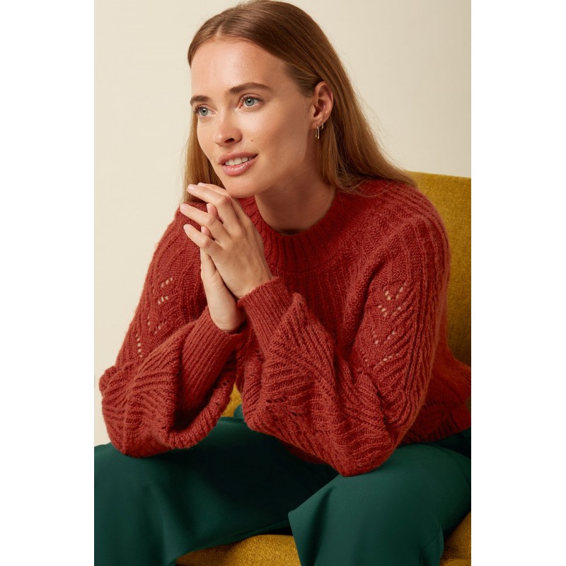 Le haut raglan Joanie Orcia allie un élégant empiècement en maille ajourée à des détails en maille ajourée, des manches longues et une encolure ronde. Ce haut offre confort et coupe flatteuse, parfait pour ajouter une touche chic et respirante à votre garde-robe.