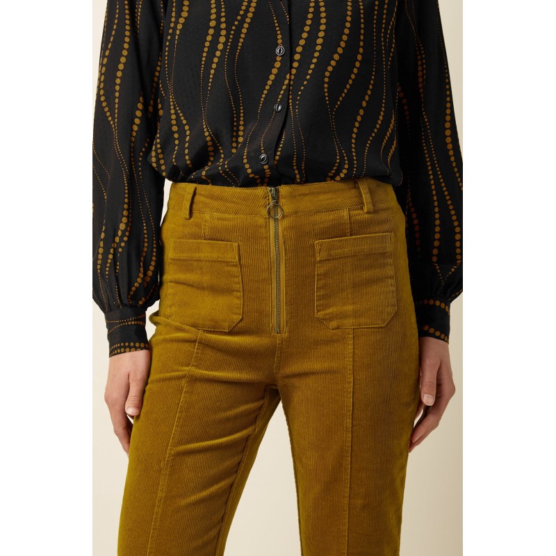 Laissez-vous séduire par la nostalgie avec le pantalon Chris, doté d'une fermeture éclair fonctionnelle sur le devant, d'une coupe droite et de coutures avant flatteuses