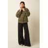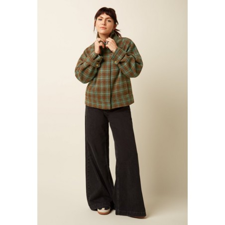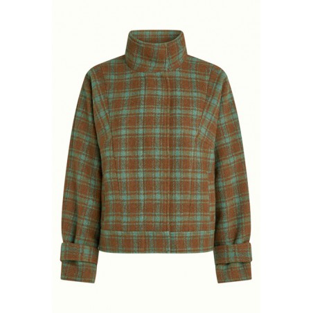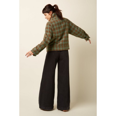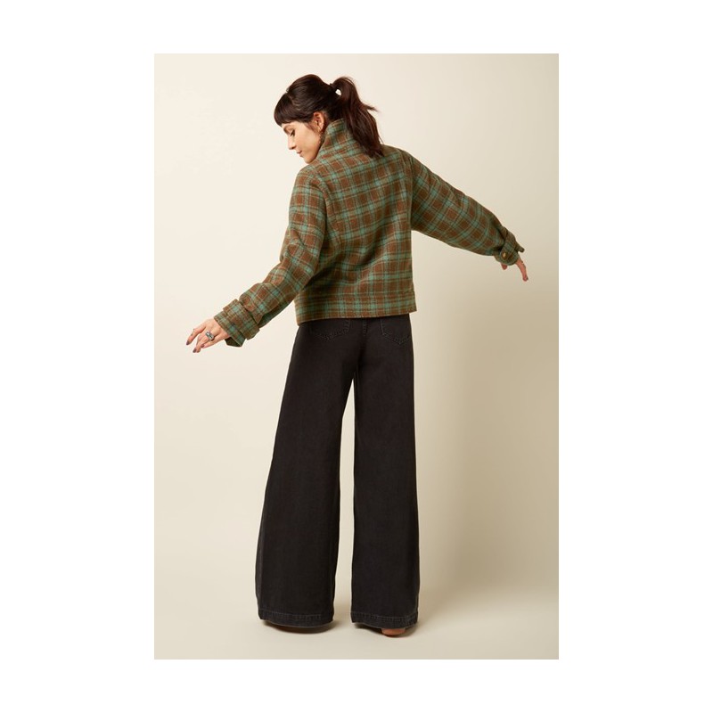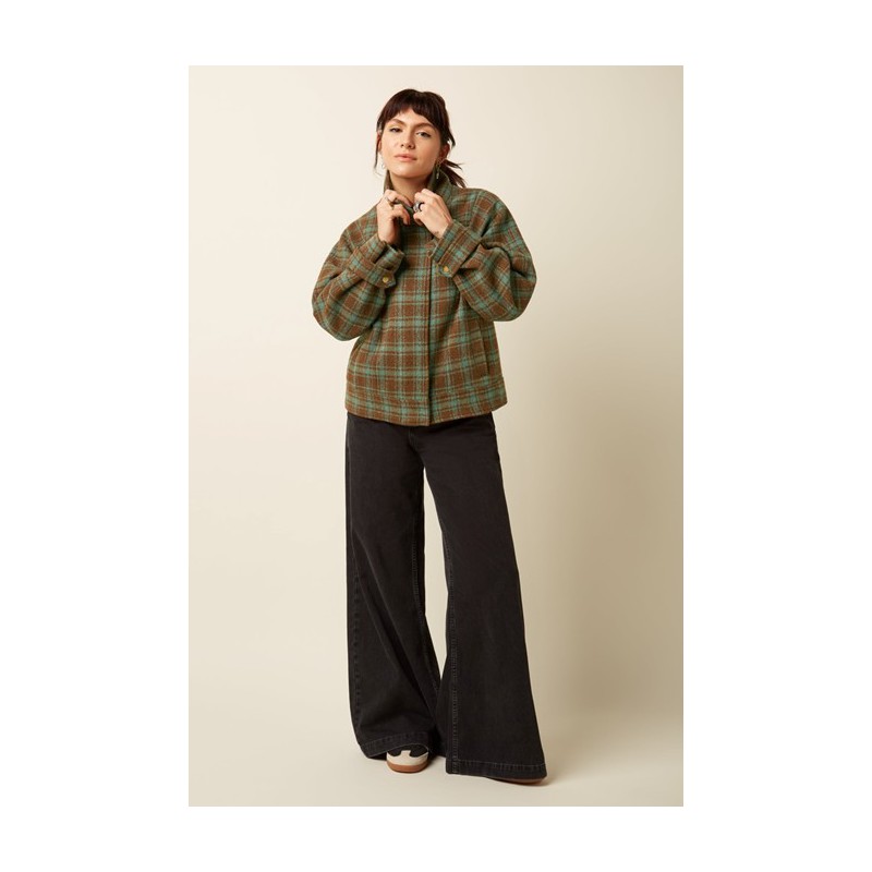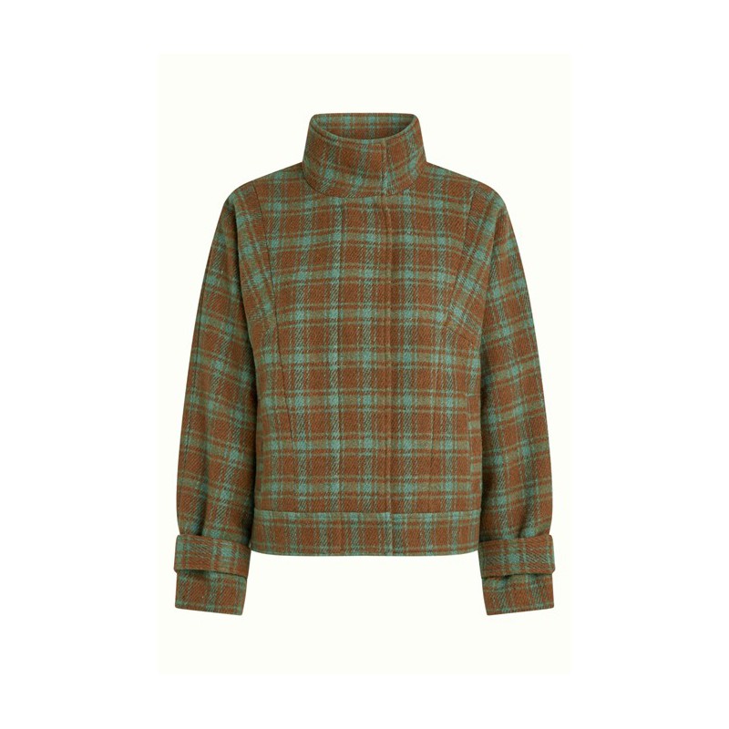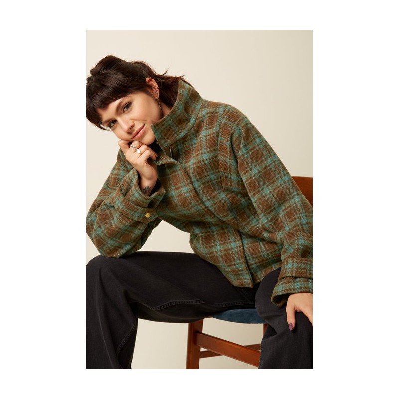 Cette veste légèrement oversize, magnifiquement coupée, arbore un col montant, des surpiqûres et d'élégants rabats aux poignets.