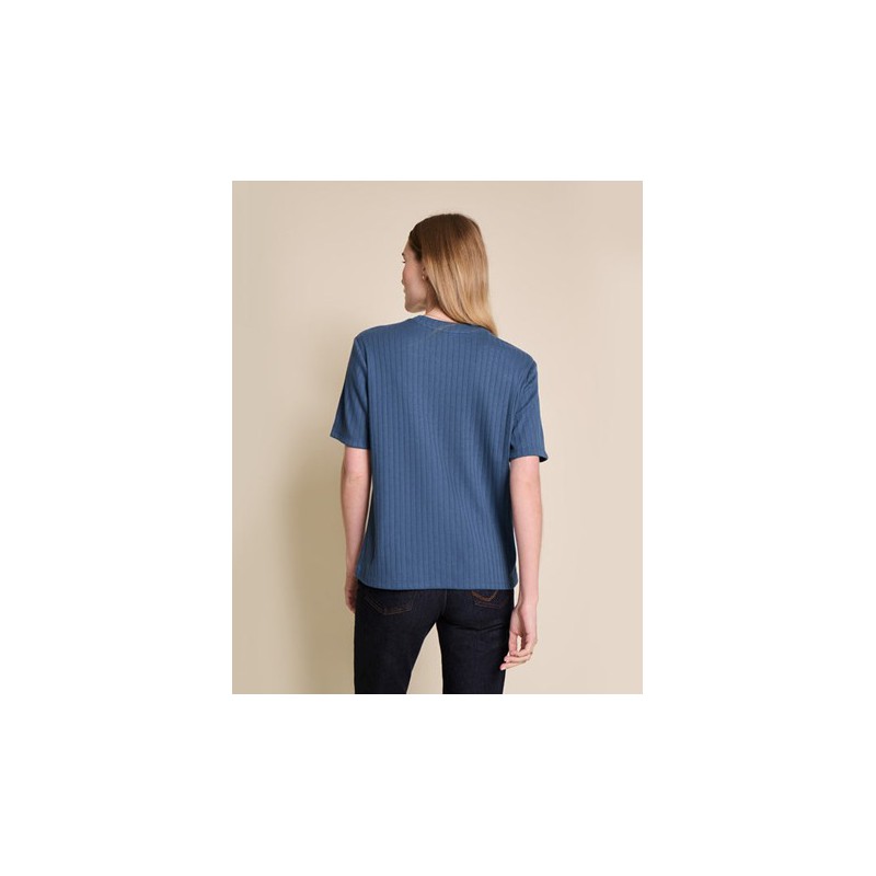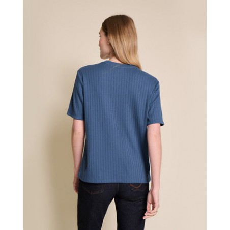 Coupe : T-shirt Juliette, coupe droite, unisexe, manches courtes, col rond avec une finition bord-côte ton sur ton. Pressions sur l'épaule jusqu'à la taille 4 ans pour l’enfiler plus facilement.