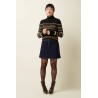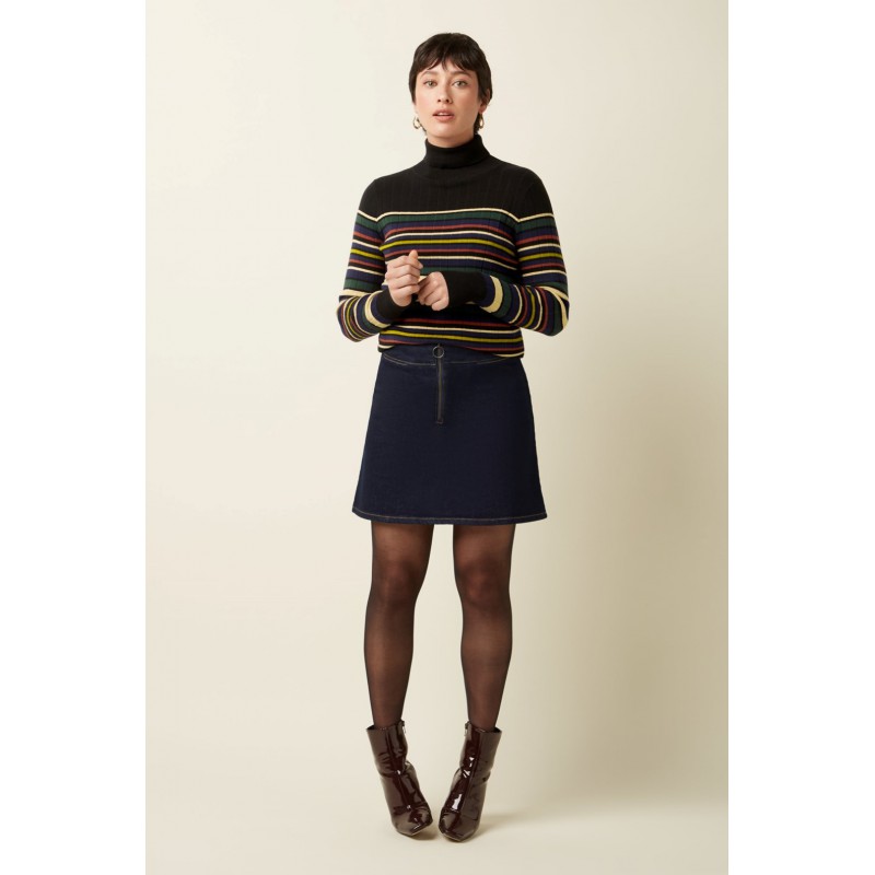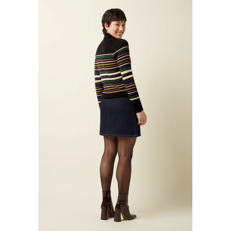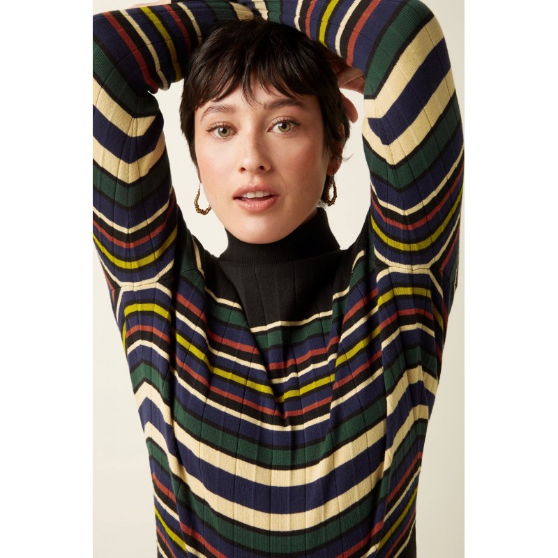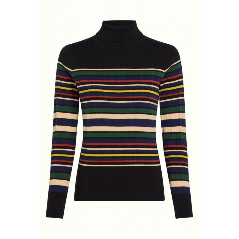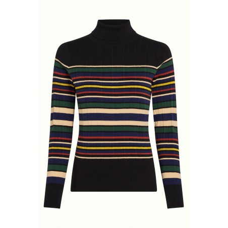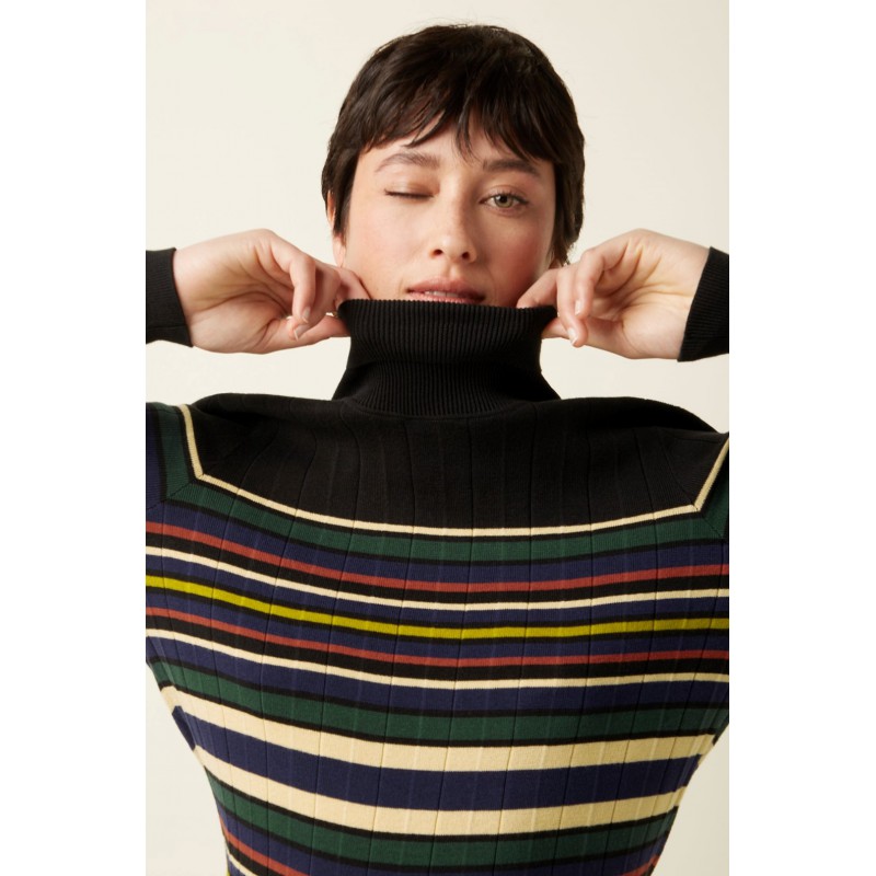 Ce pull à col roulé présente un motif rayé et des manches longues. Il est confectionné en maille extensible pour un confort optimal. Son col roulé offre une chaleur supplémentaire et une coupe confortable.