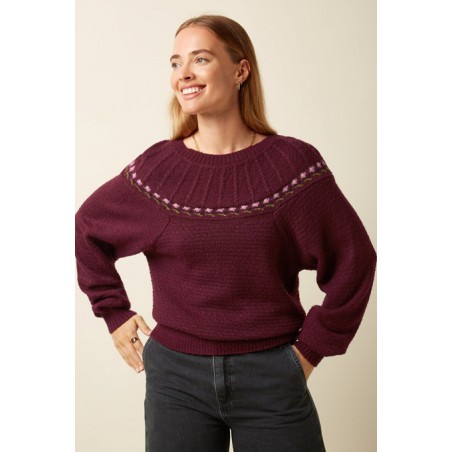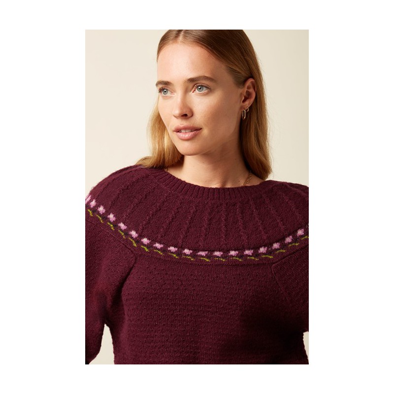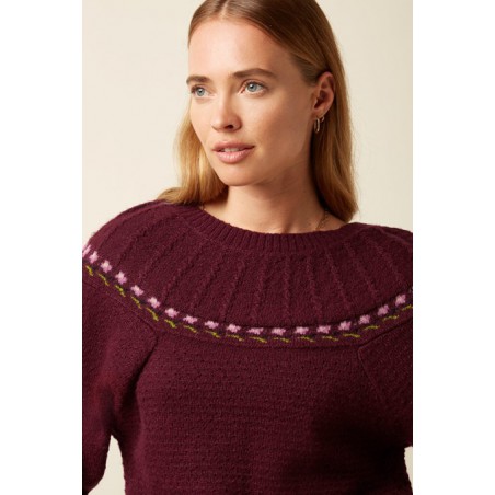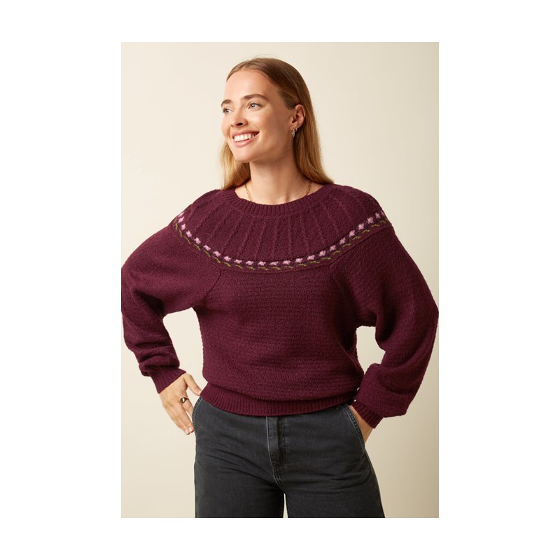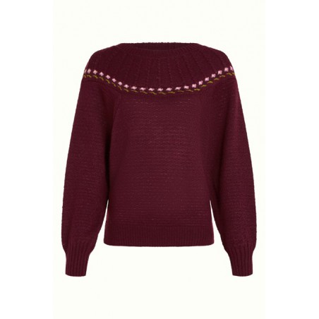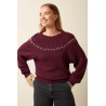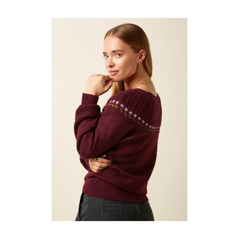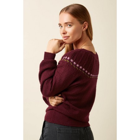 Pull tricoté style années 80 avec des fleurs le long de l'empiècement