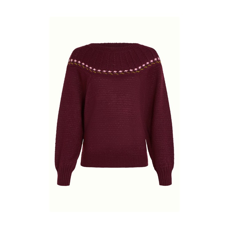 Le pull t à empiècement Azzurra Carrasco apporte une touche festive des années 80 avec son design tricoté et ses touches florales ludiques le long de l'empiècement. Confectionné en acrylique extensible avec une maille ajourée légère, il présente des manches chauve-souris décontractées et une encolure ronde confortable pour un look dynamique et élégant.