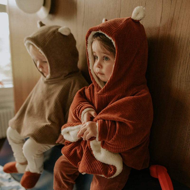 Enveloppez votre bébé dans un cocon de douceur avec le poncho en velours côtelé paprika doublé teddy. Confortable, pratique et résolument chic, c’est l’allié parfait pour les sorties d’hiver, les balades ou les trajets en voiture. Un incontournable de la garde-robe bébé !